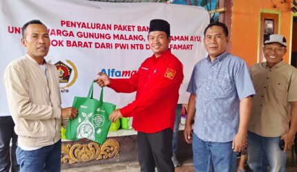 Kolaborasi PWI NTB – Alfamart Salurkan Paket Sembako Bagi Nelayan Korban Banjir Lombok Barat