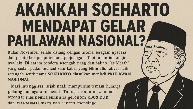 Lalu apakah Soeharto akan benar-benar jadi Pahlawan Nasional? Bisa jadi. Karena di negeri ini, yang paling menentukan bukan kebenaran, tapi izin politik. Kalau kekuasaan sudah setuju, sejarah bisa dipelintir jadi stand-up comedy tanpa tawa.